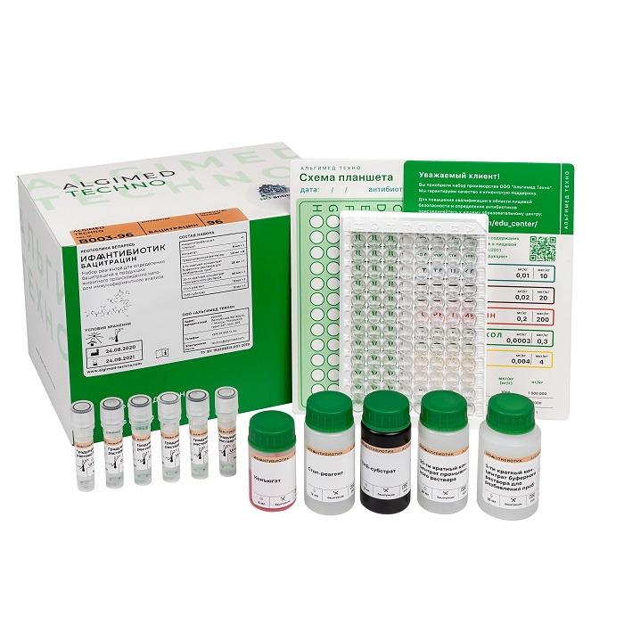 Набор предназначен для количественного определения содержания антибиотика бацитрацина и цинкбацитрацина методом конкурентного иммуноферментного анализа в следующих матрицах: