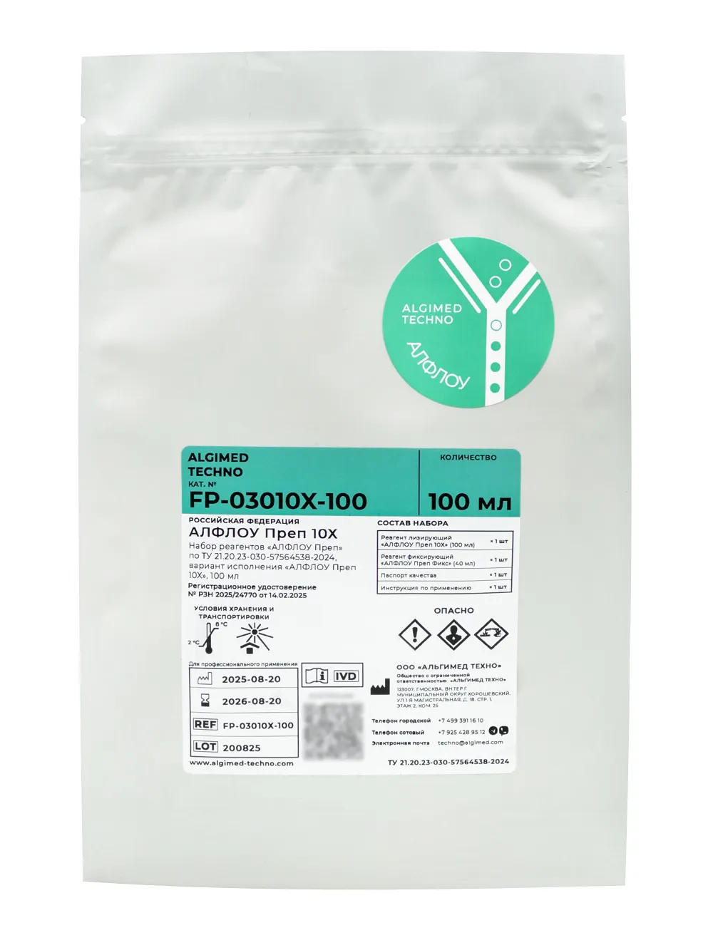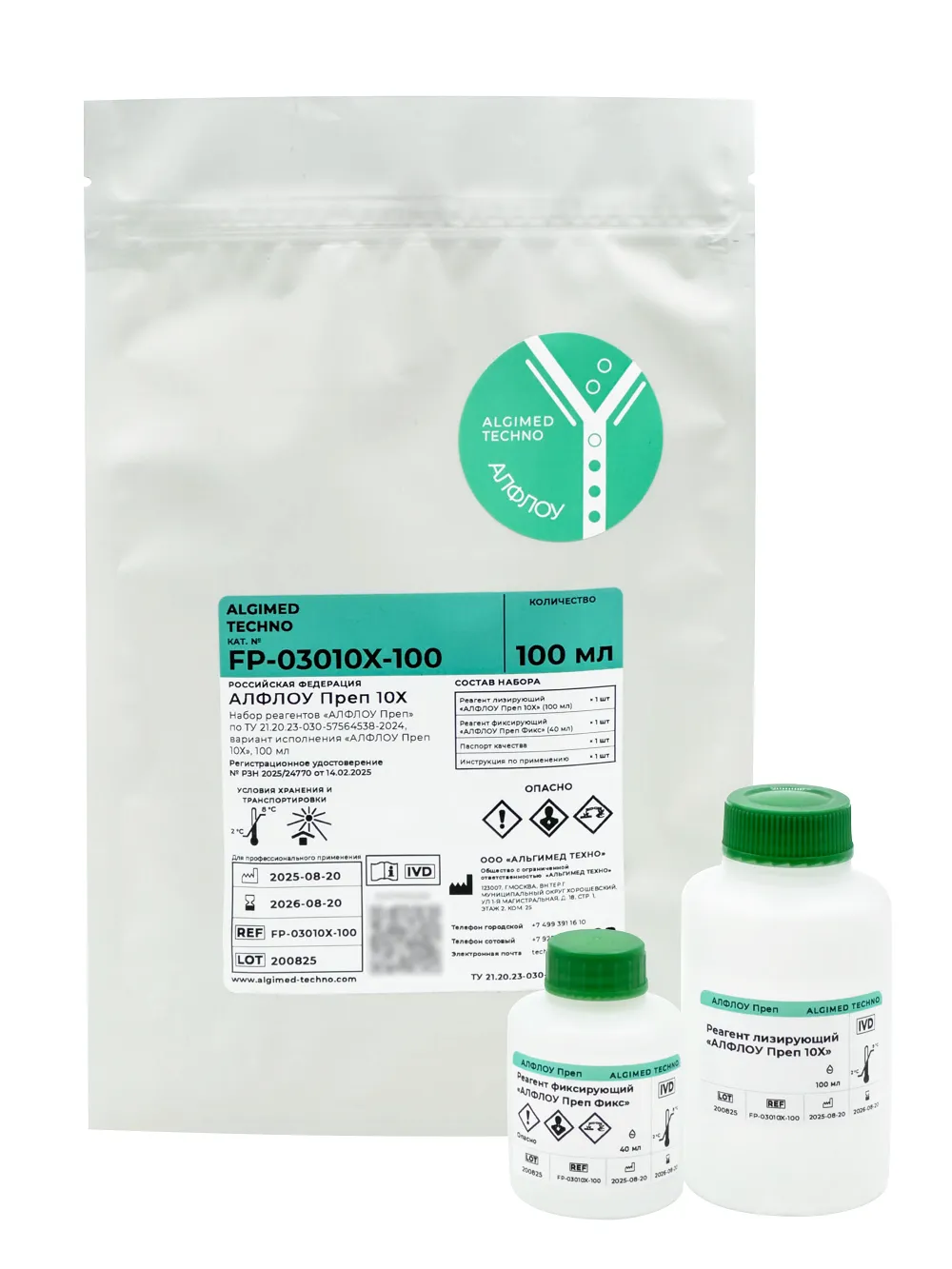 «ALFLOW Prep 10X» kit consists of 10-x concentrate of lysing reagent based on ammonium chloride and a fixative solution. The reagent kit is intended for removal of erythrocytes from whole blood sample during preparation of human blood samples for analysis by flow cytometry.